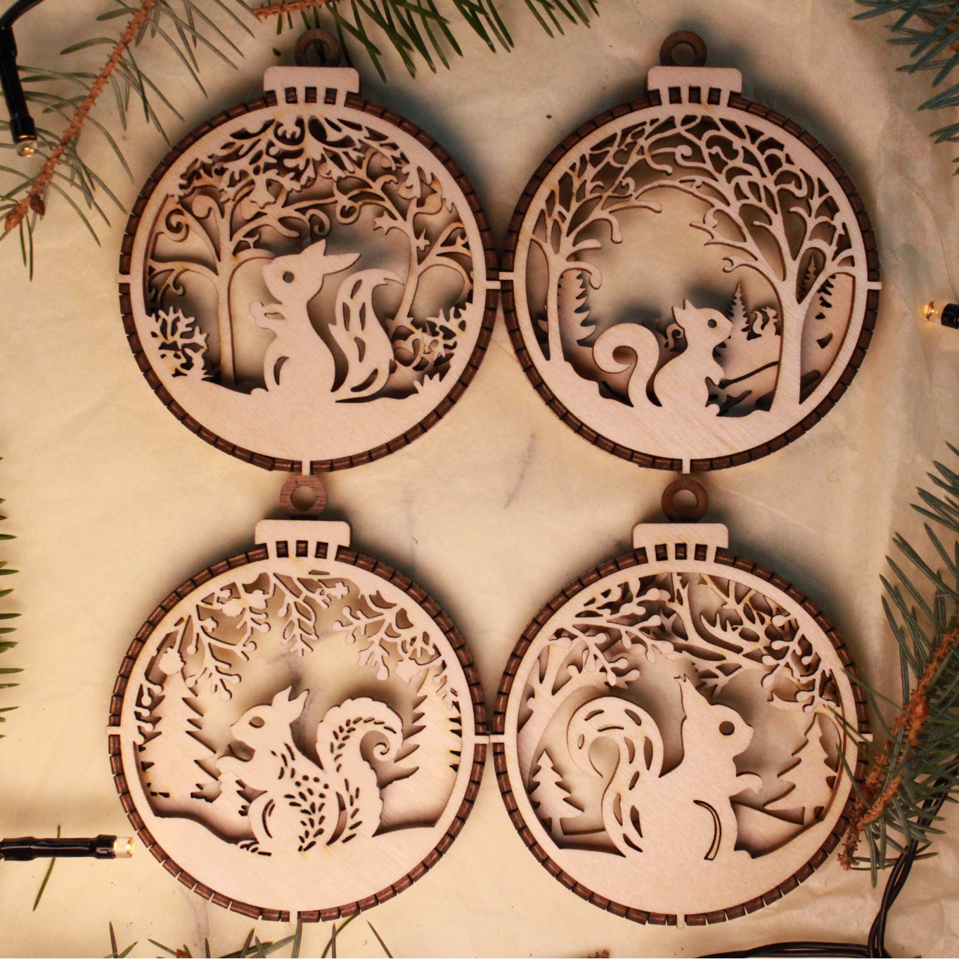 3D Julekugler - Sæt med 4 Egern
